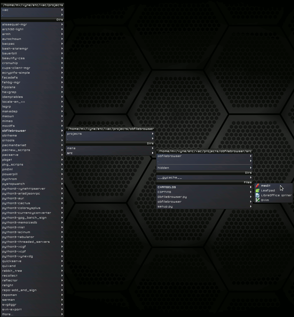 Description: | An Openbox pipe menu application and file browser. |
