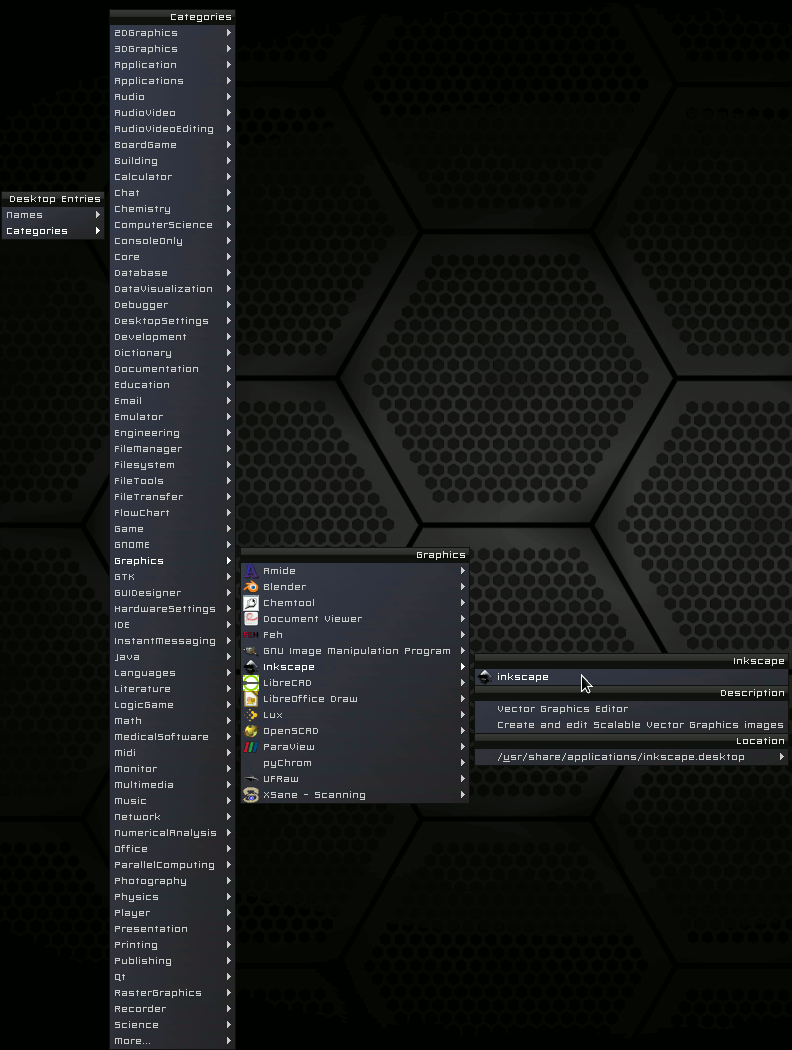 --desktop-menu Display desktop entries sorted by name and category.